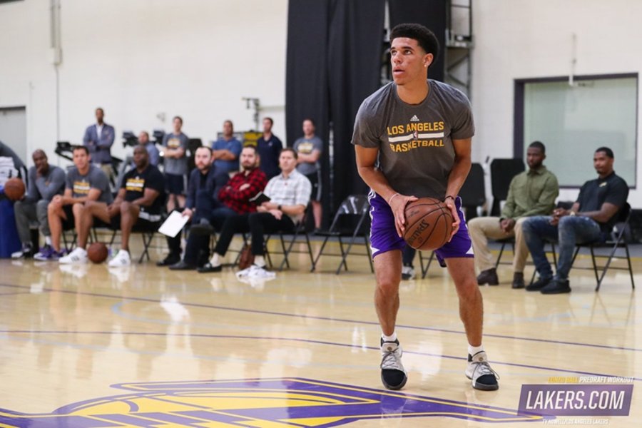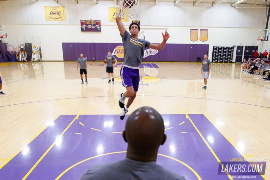 Lonzo Ball 出生于 1997 年,身高 1.98 米,曾在高三时期拿下场均 23.4 得分 11.5 篮板 12.9 助攻的三双数据。此番 Lonzo Ball 便现身湖人队试训场,对运球、传球、突破、上篮等一系列技能进行了测试。随后湖人更是在官方社交媒体上释出多张 Lonzo Ball 试训图片,看来 “球哥” 加盟湖人队恐怕已是大概率事件!