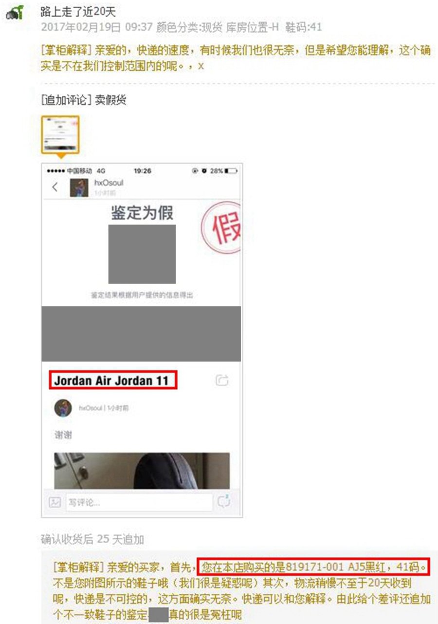 但给 AJ5 差评,却发出 AJ11 的鉴定图片。