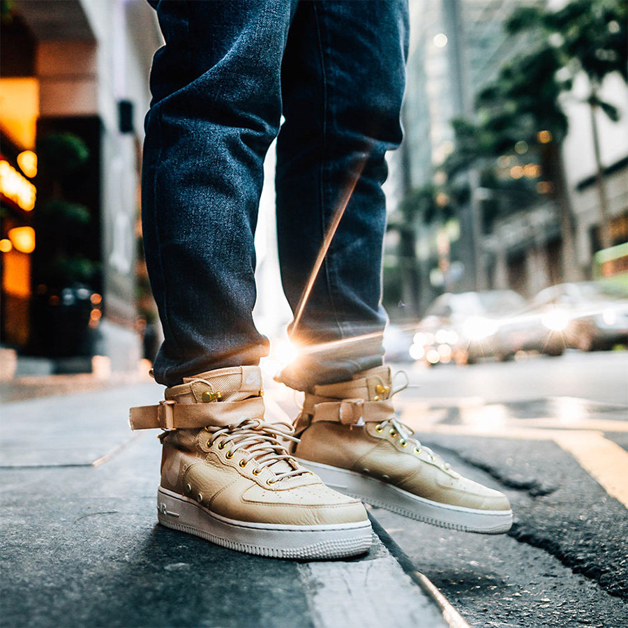 被称为 Mushroom 蘑菇配色,这款 Nike SF-AF1 Mid 不仅以军事风造型带来帅气外观,配色方案也格外的讨好,休闲又时尚,极易穿着搭配。 Nike SF-AF1 Mid 降低了鞋身高度,以优质皮革和帆布材质搭配打造鞋身,两种质感的交织,加上细节印花的不经意点缀,粗犷中又透露着精致。 最后以白色鞋底收尾,再现了 AF1 经典鞋型的运动活力。目前还没有具体的发售日期,想必定将延续 SF-AF1 的火热人气!(pic via sihyung21)