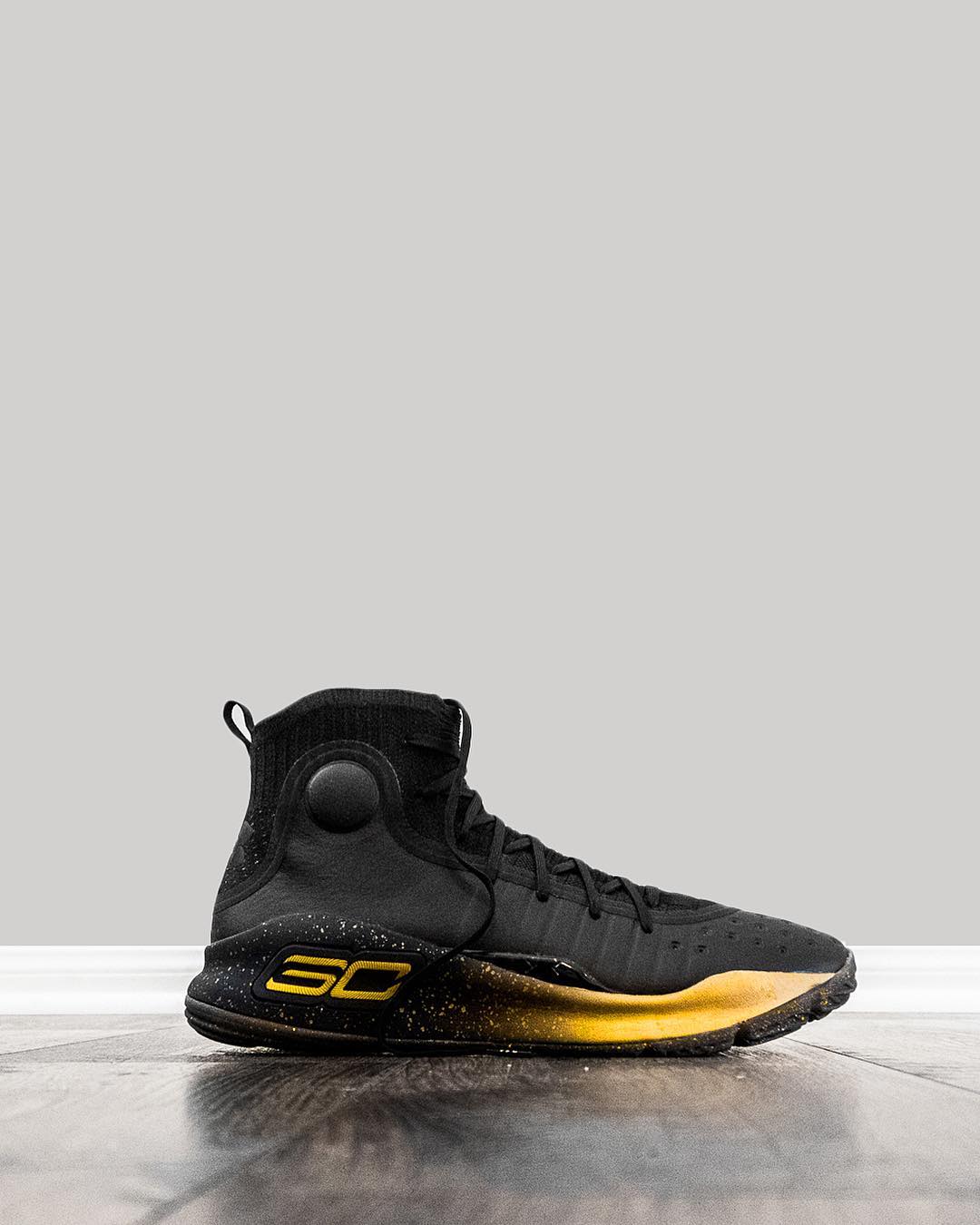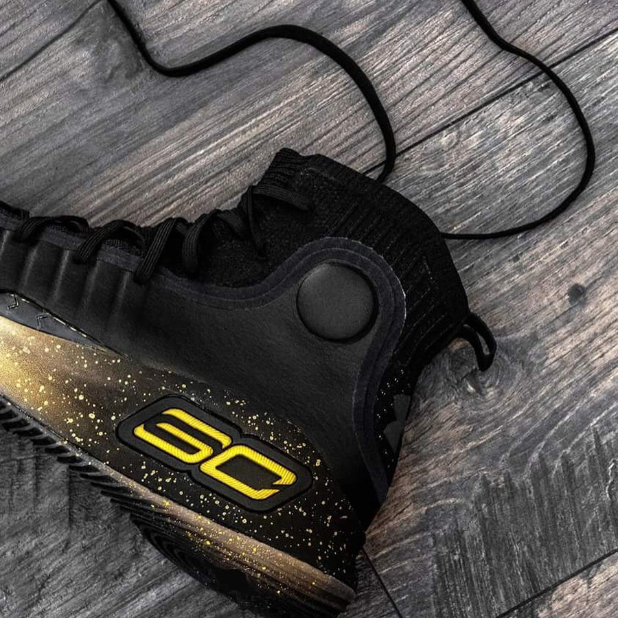 这双黑金配色 Under Armour Curry 4 整体的黑色展现出整体的低调,金色部分又彰显出华丽质感,黑金搭配一直备受关注,此双已经发售想必又有不少人要剁手了吧!