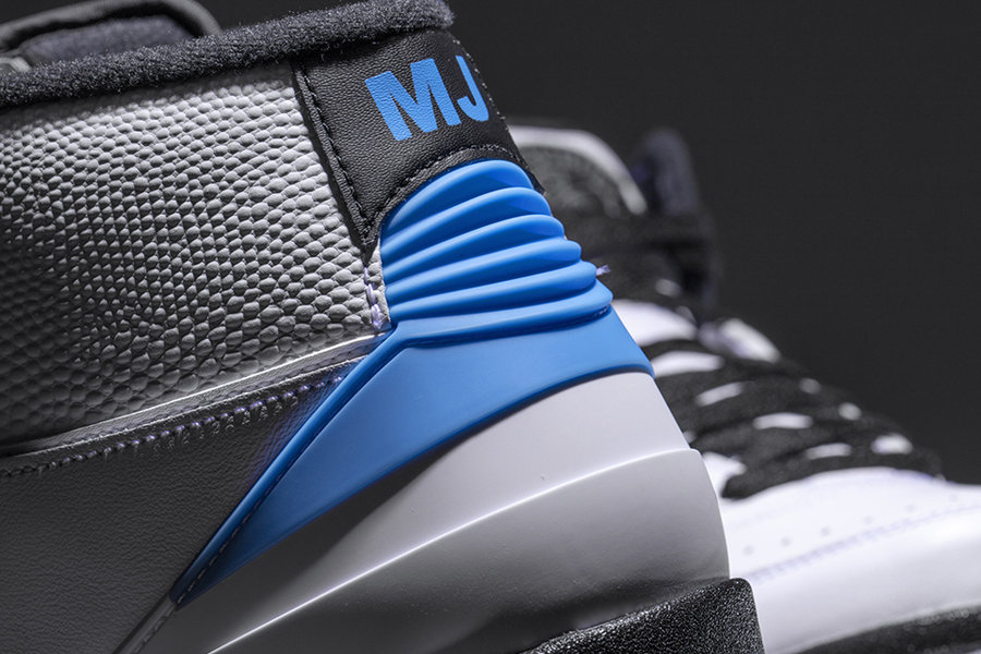 本次不仅还原了初始的配色方案,采用白色皮革打造鞋面,搭配黑色中底及鞋带,细节处辅以北卡蓝及芝加哥红双色点缀。更是在鞋跟左右两侧分别印有 MJ 及 6/28/87 字样,表明了当时的主角身份及比赛日期,纪念意义十足!