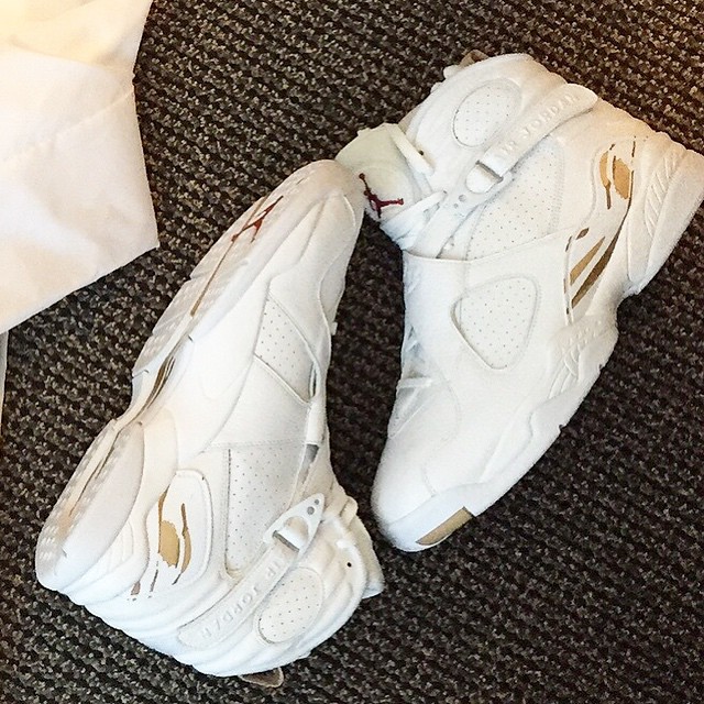 在 2016 年 NBA 全明星周末期间,OVO 的主理人 Drake 曾在场边上脚过两双特殊版本的 Air Jordan 8。这是为致敬 NCAA 传奇名帅 John Calipari 主题纪录片的上映,加拿大著名歌手 Darke 主理的 OVO 携手 Jordan Brand 特别打造一套名为 “Calipari” Pack 的 Air Jordan 8 套装!