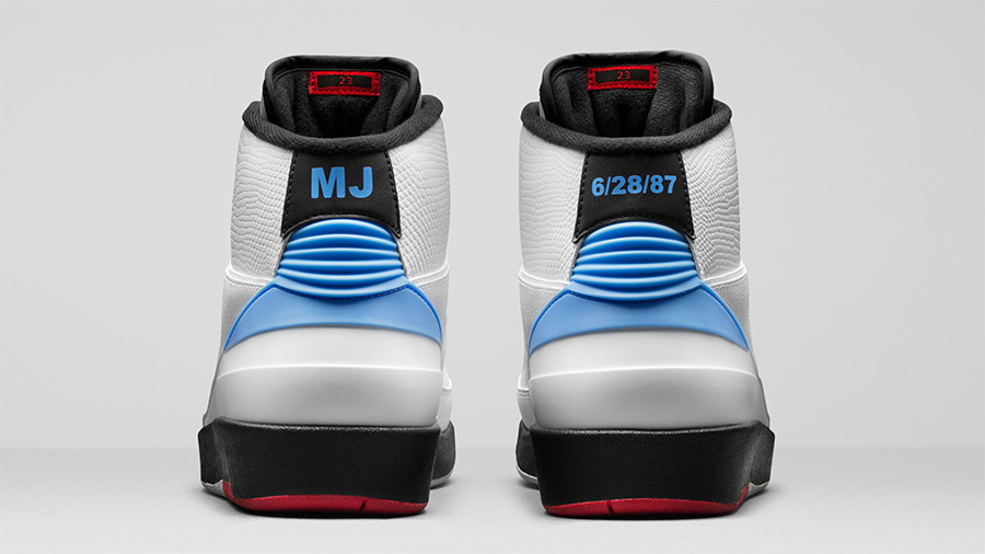 本次不仅还原了初始的配色方案,采用白色皮革打造鞋面,搭配黑色中底及鞋带,细节处辅以北卡蓝及芝加哥红双色点缀。更是在鞋跟左右两侧分别印有 MJ 及 6/28/87 字样,表明了当时的主角身份及比赛日期,纪念意义十足!