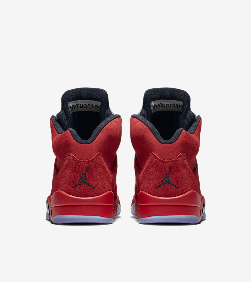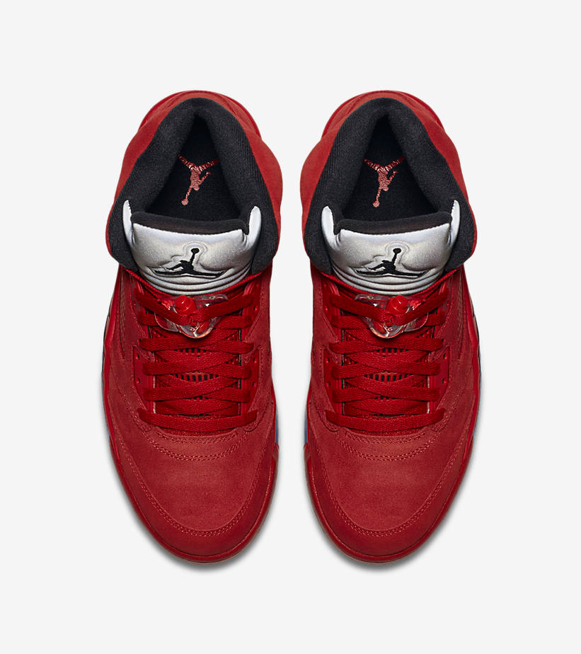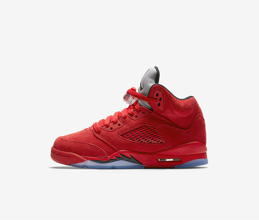 以近似 “Raging Bulls” 愤怒的公牛配色呈现,这款 Air Jordan 5 “Flight Suit” 将在 7 月 1 日上架,带来火红色麂皮鞋身的夺目效果!
