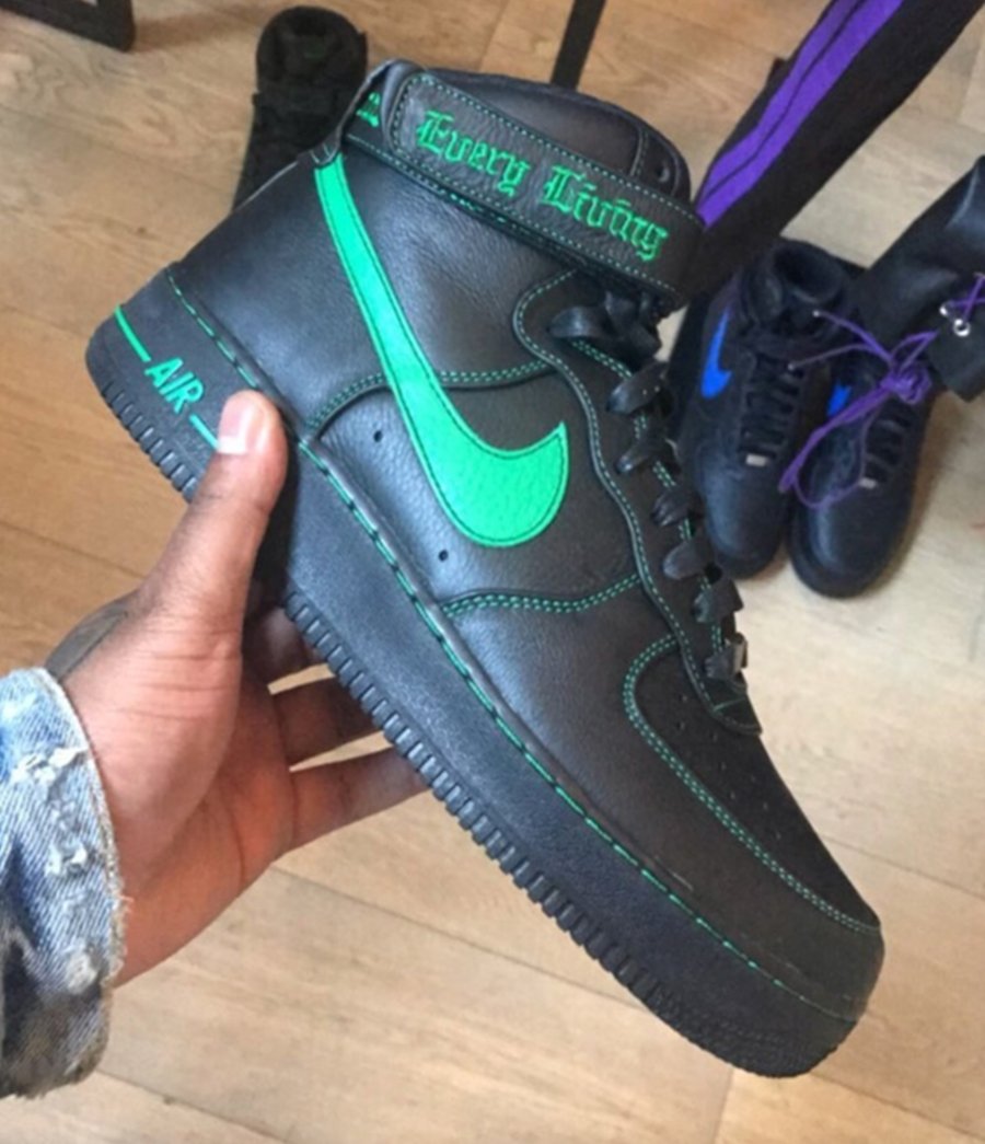 品牌主理人 A$AP Bari 将在巴黎时装周期间释出多个 VLONE 新品,其中 VLONE x Nike Air Force 1 High 的最新联名配色自然是大家关注的焦点。继早前释出黑橙配色高帮版本之后,此番则迎来 5 款全新配色实物细节图片曝光!