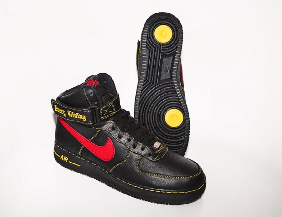 其中一款以黑色鞋面为主基调,搭配红黄装扮细节版本的 VLONE x Nike Air Force 1 High,已于昨日率先登陆法国 Nike 官网以抽签的形式登场,发售数量极其稀少,仅有 20 双。