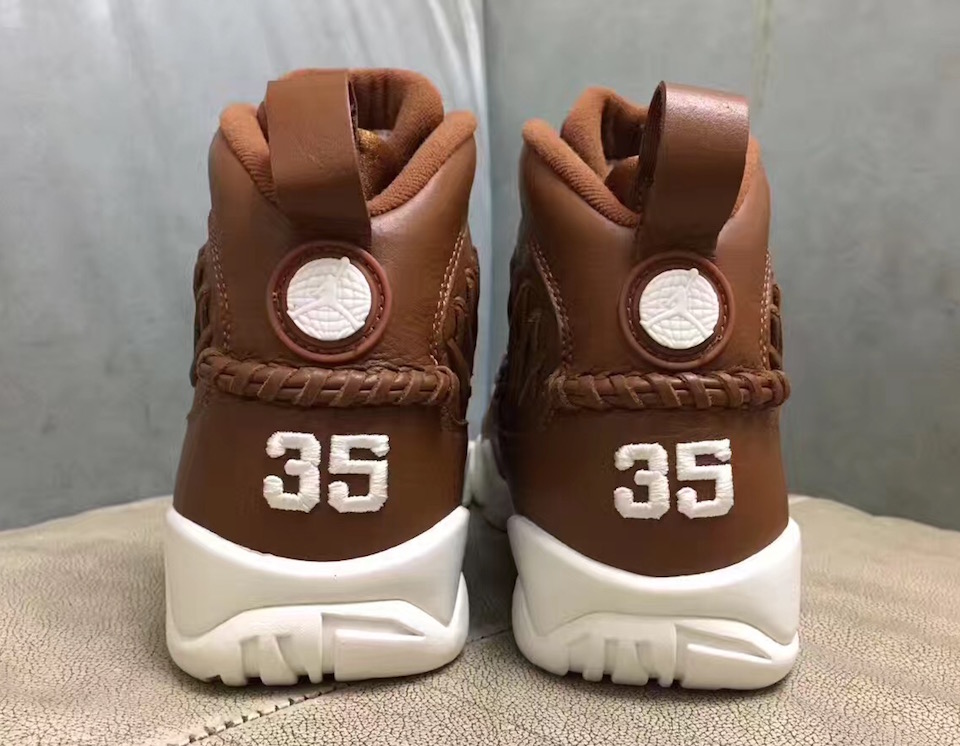 这款 Air Jordan 9 “Baseball Glove” 棒球别注鞋款,根据 Jordan 在 1994 年参加亚利桑那州斯科茨代尔蝎子秋季联赛为灵感,以棒球手套的棕色为主色调。鞋面在保持九代战靴经典鞋型轮廓的同时,采用优质皮革制作鞋面,并别出心裁的将棒球手套中的交叉线条元素呈现于鞋身两侧。棕色版本则采用亚利桑那州斯科茨代尔蝎子秋季联赛的 35 号码点缀后跟。最后搭配独特的皮绳鞋带收尾,营造出满满的奢华质感!