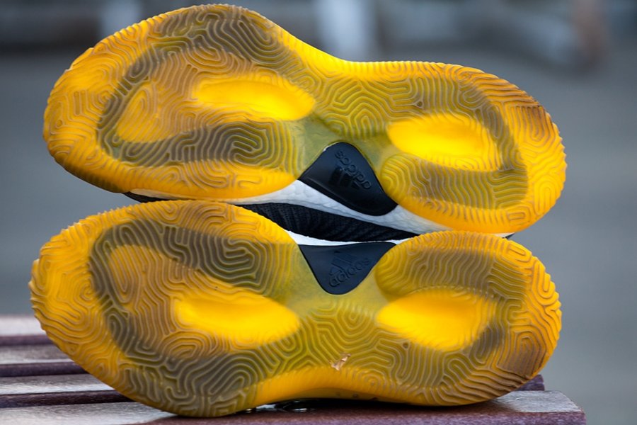 上代出色的抓地力和被笑称为 “橡皮擦” 的耐磨性此番一并继承,无论是何种场地,犹如珊瑚纹理的橡胶外底都能给你足够的制动表现。对于大家诟病的耐磨性,此番确实没有改进,定位于内场鞋的它,也许木地板或者质量较好的塑胶外场才是正确的打开方式。
