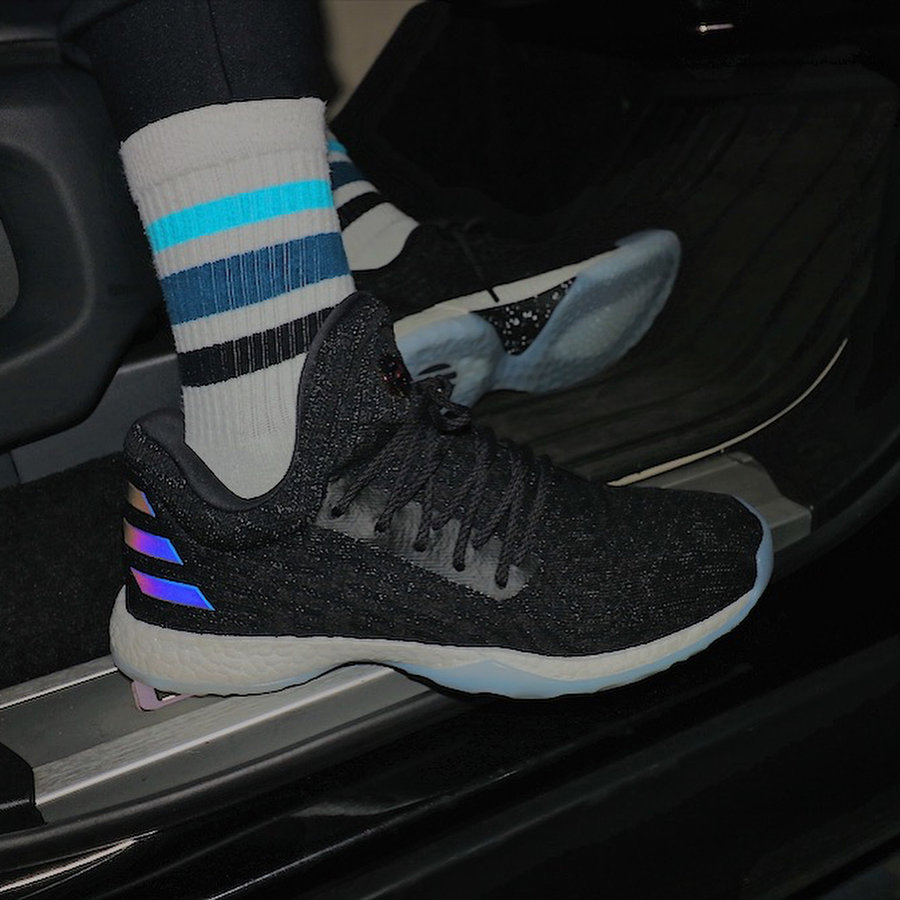今日,哈登在个人 Instagram 上展示出全新 adidas Harden LS 的上脚图片,这双首发的第一款配色则是名为 “Night Life” 的夜店配色!劲酷的黑色鞋身,后跟的三条杠还带有炫彩光泽,可见登哥的娱乐属性是这款 Harden LS 主要表达的!去掉了鞋头包裹,外底的外侧也露出了 Boost 颗粒,更为简约的细节设计,以及更为连贯的线条勾勒,使得上脚穿搭更容易出彩!