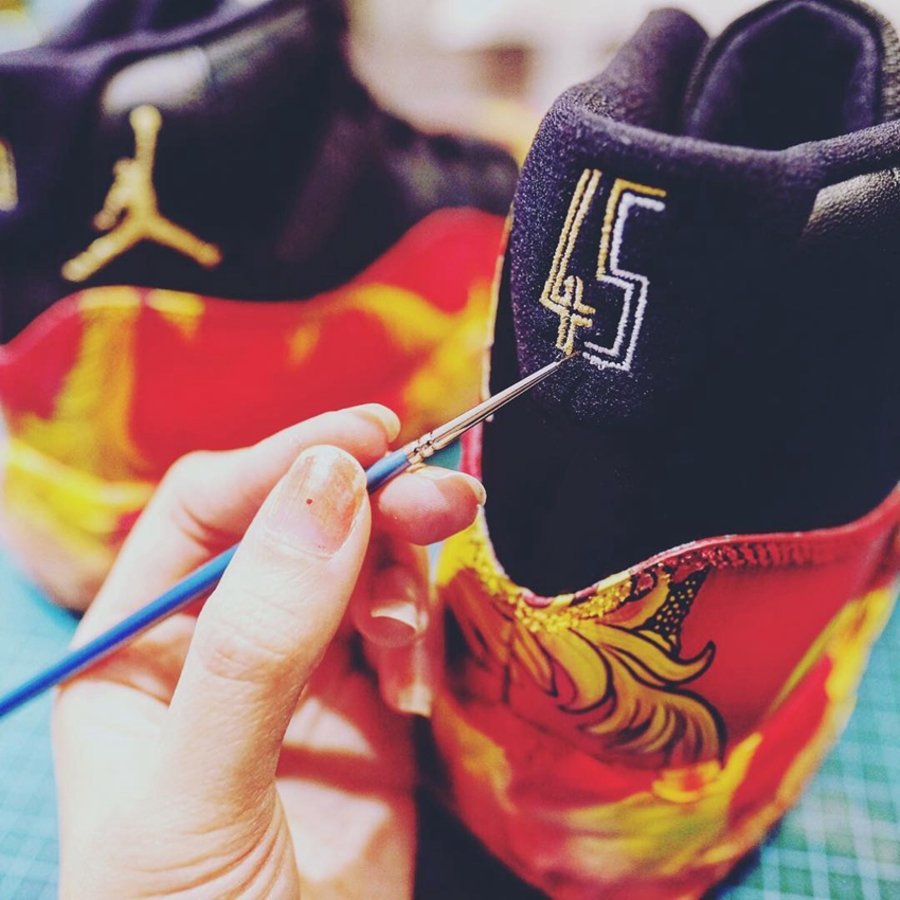 此前做为职业化妆师,从小热爱绘画,凭借对球鞋的热爱,毅然辞去工作成为一名全职球鞋定制师。