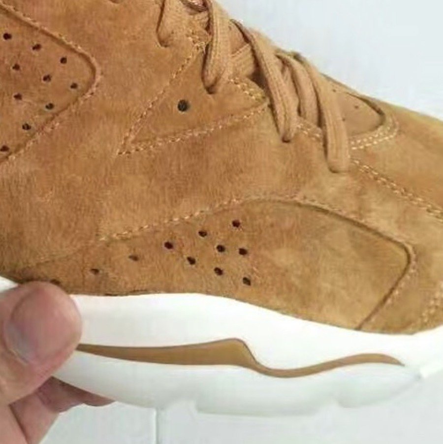 另一双 Air Jordan 6 采用人气颇高的小麦配色,鞋身运用了优质的麂皮材质,整体极具质感,并充满冲击力!Jumpman Logo 与外底采用白色进行点缀!