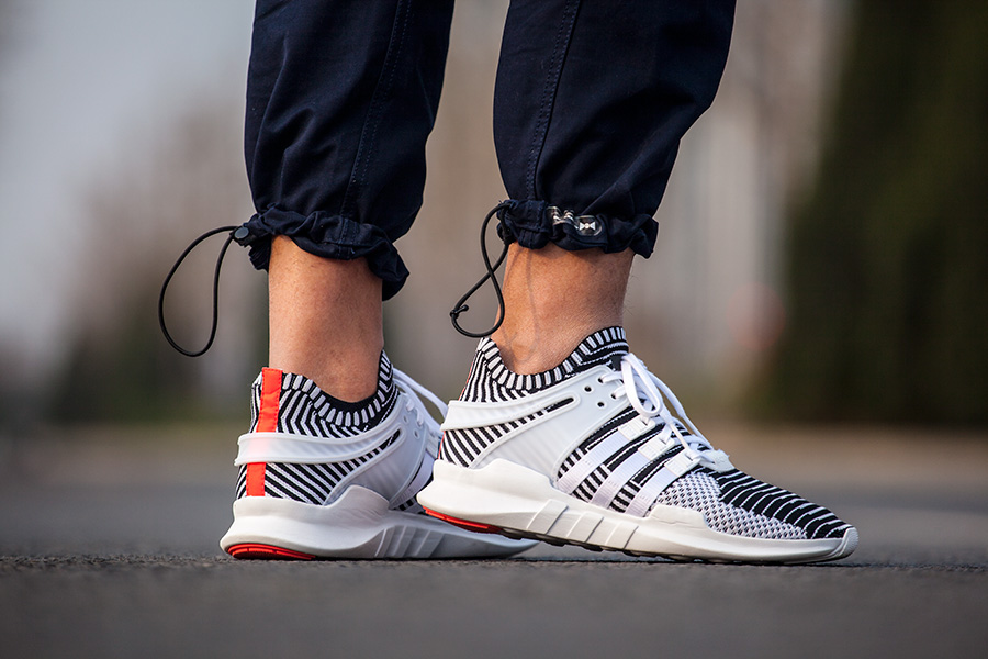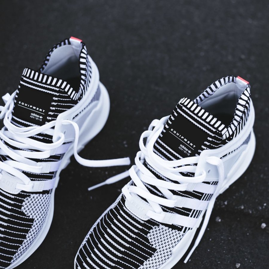 又一双斑马纹理登场,首次将 Primeknit 织物注入 EQT Support ADV 鞋型之中,层次丰富的纹理之下,后跟一抹亮粉成为该鞋点睛之笔。