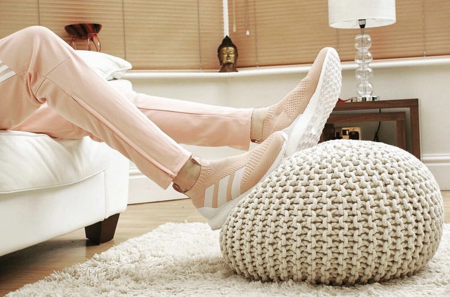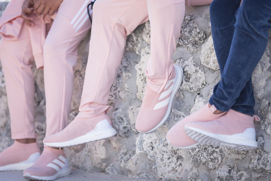 此番与 Kith 联名更是加入了清新的淡粉色元素,大面积的粉色编织鞋身太过抓人眼球,白色三道杠和后跟 TPU 贴片搭配得恰到好处,后跟处加入白色 Kith 标识宣告着自己的身份。