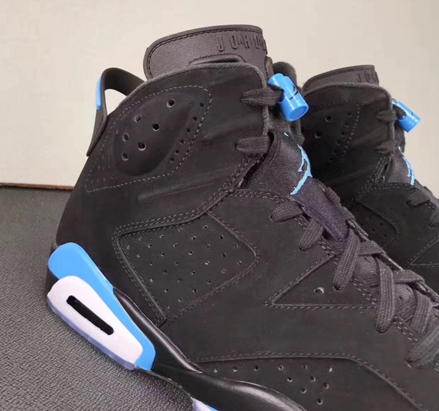 在延续 Air Jordan 6 经典鞋型轮廓的同时,采用一席黑色优质皮革覆盖全身,辅以清爽的北卡蓝色装扮点缀细节,依旧搭载半透明水晶大底。整体造型低调沉稳又不失帅气,上脚效果必定不俗!