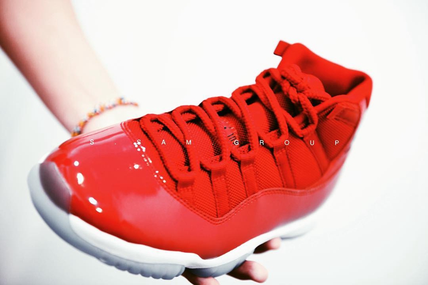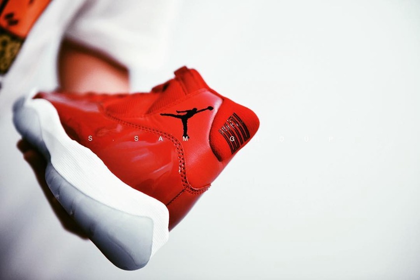 另一双将在 12 月 9 日登场的大红配色人气同样不俗,近似于安东尼 PE 的独特装扮,通体采用红色覆盖,后跟熟悉的 23 号胶印回归,这份 AJ11 中少见的高亮呈现,想必决定入手的朋友不在少数!