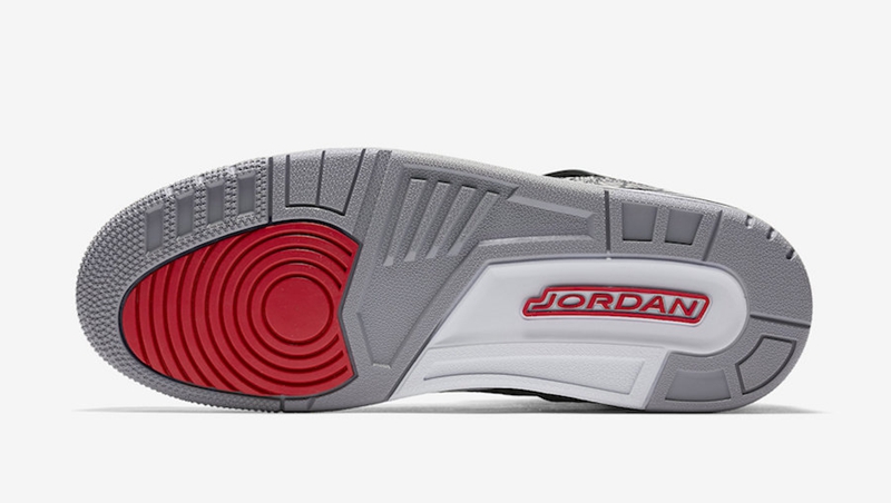 整体鞋身轮廓以 Air Jordan 5 为原型,结合 Air Jordan 3 中底和大底,并将熟悉的爆裂纹覆面一并呈现,鞋侧辅以 Air Jordan 4 的鞋眼片及三角稳定标识细节,搭配 Air Jordan 6 标志性的镂空鞋舌。熟悉的黑水泥装扮贯穿其中,整体造型不但没有违和感,更产生一股独特的视觉冲击,可谓用心良苦!