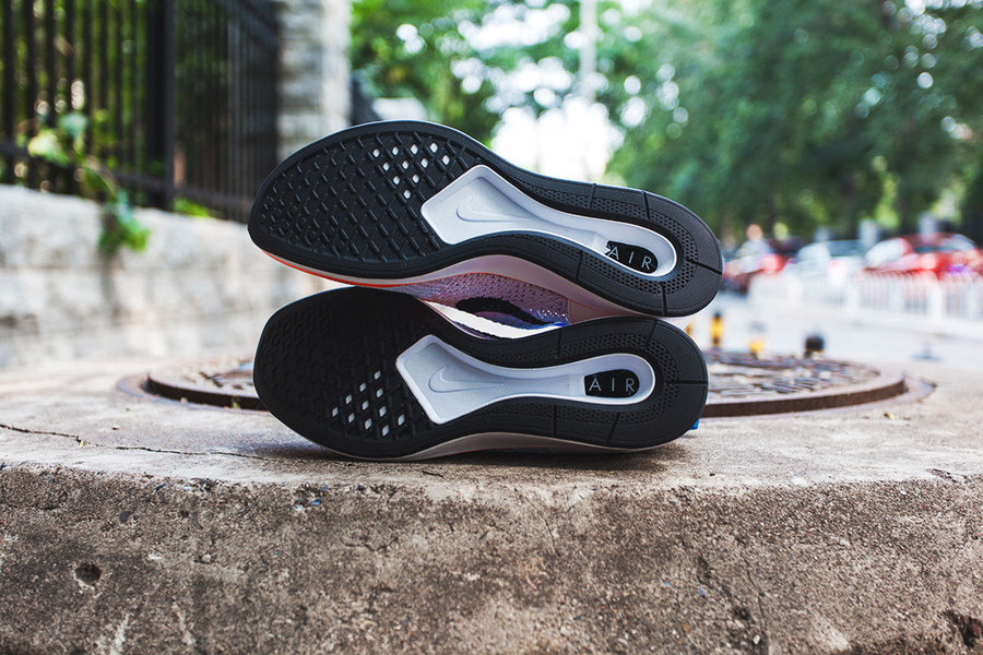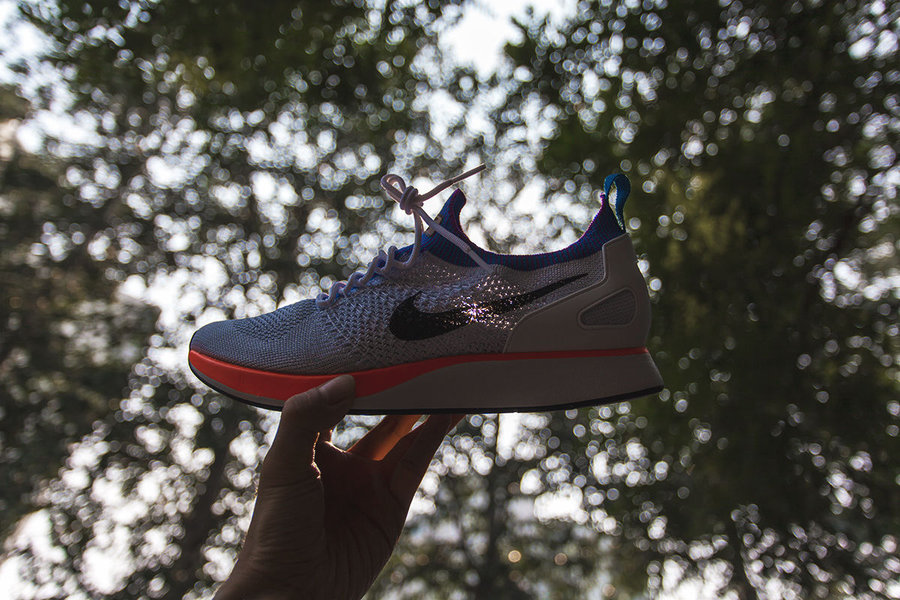 相比于 Flyknit Racer 的前掌 Zoom Air 气垫,Mariah Flyknit Racer 采用了全新的后掌 Zoom Air 气垫方案,在跑步过程中可以明显的感受到气垫的力量回馈。
