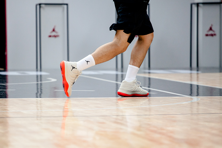 在刚换上这双 Jordan Super.Fly 2017 React 的时候,小编一行走的方式进行了前后踩压,可以轻松的感受到 Nike React 带来柔软感受。