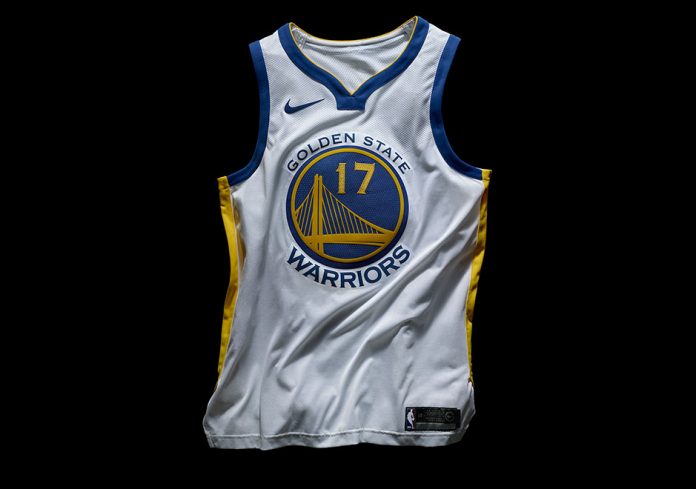 目前现已公布 2017-2018 赛季金州勇士队的 Association Edition 联盟版主场球衣,在右胸处绣有 Swoosh 标识,球衣整体质感更加轻薄,肩带相对于之前来说更窄了!