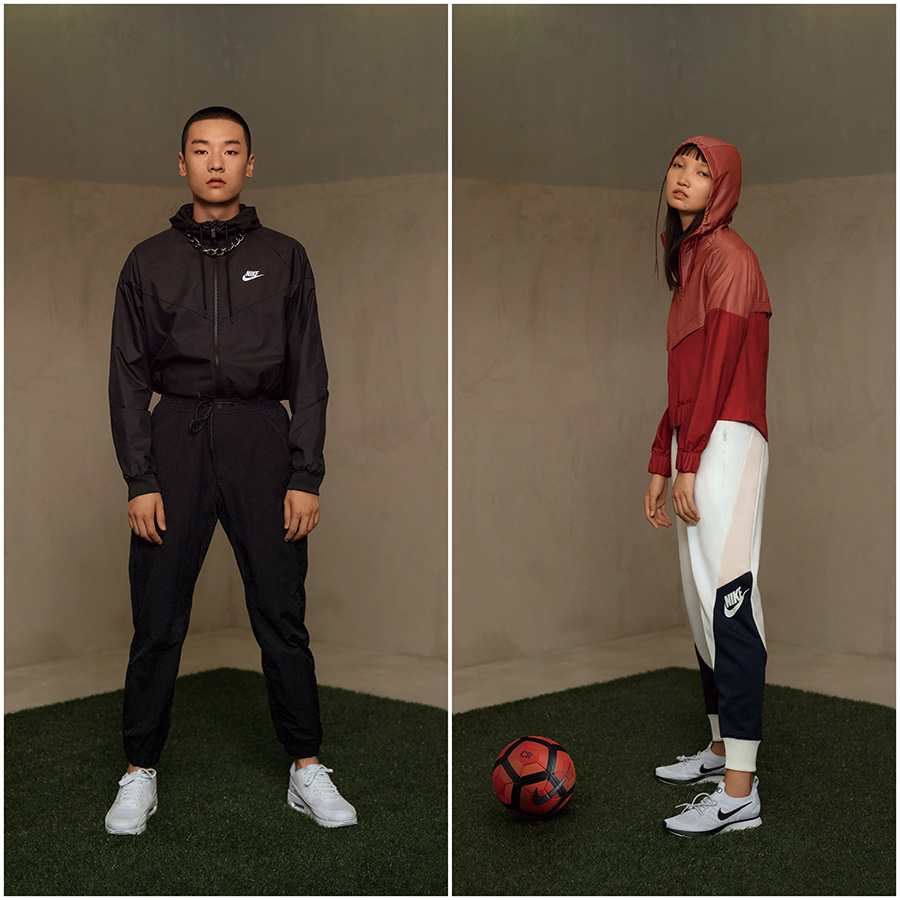 这一造型系列囊括了众多的 Nike 服饰,而鞋款搭配也格外的丰富,从足球鞋到 Cortez,从 Air Max 经典款式到最新的 Mariah Flyknit Racer,都有个性浓郁的视觉表现力。