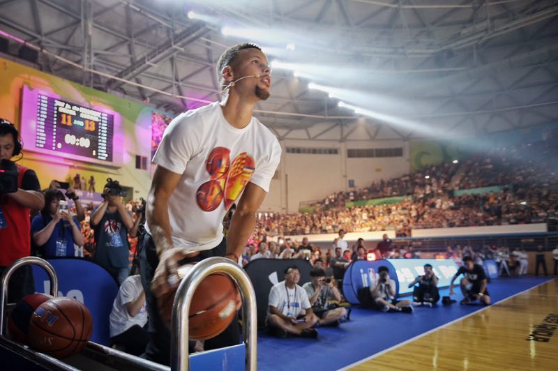 勇士队御用 DJ D-Sharp、全国跆拳道冠军与演员张蓝心、中国乒乓球队队长丁宁、深圳马可波罗队员顾全一同出现在现场,并玩起了轻松欢乐的游戏。库里就像是一个可爱的大男孩,即腼腆,又搞笑,全程面带微笑,频频与粉丝互动,最后为大家签名留念,对于球迷来说这无疑是最好的回馈!