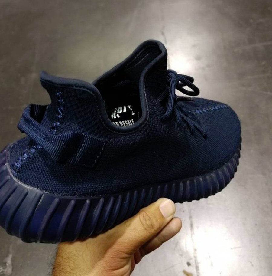 本次曝光的两款 Yeezy Boost 350 V2 均以纯色装扮呈现,分别采用午夜蓝及小麦黄色调贯穿整体,并在鞋身内侧印有 “SAMPLE” 字样表明身份。