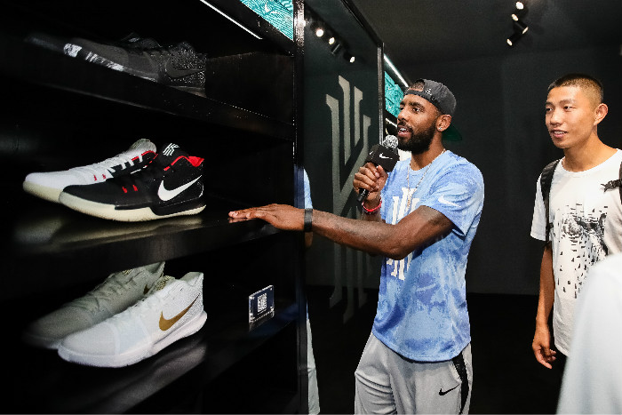 在训练结束后,欧文造访五棵松 Nike 与 Jordan 篮球体验店。与现场热情的球迷们进行互动游戏!
