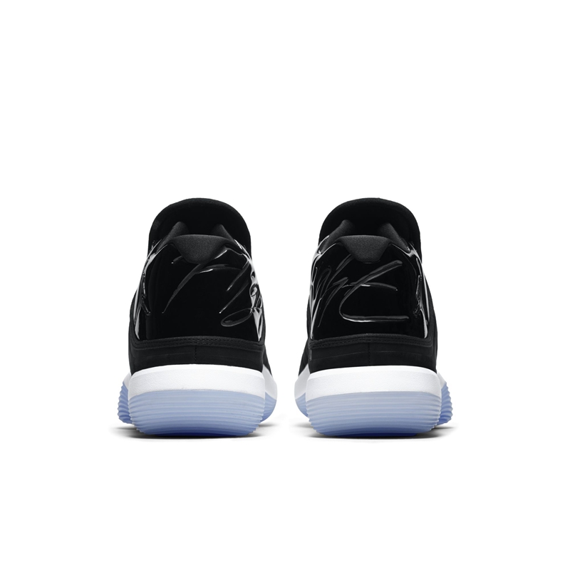 黑色磨砂皮革与漆皮材质相互拼接,辅以白色中底和水晶外底帮衬,直击 Space Jam 大灌篮主题。