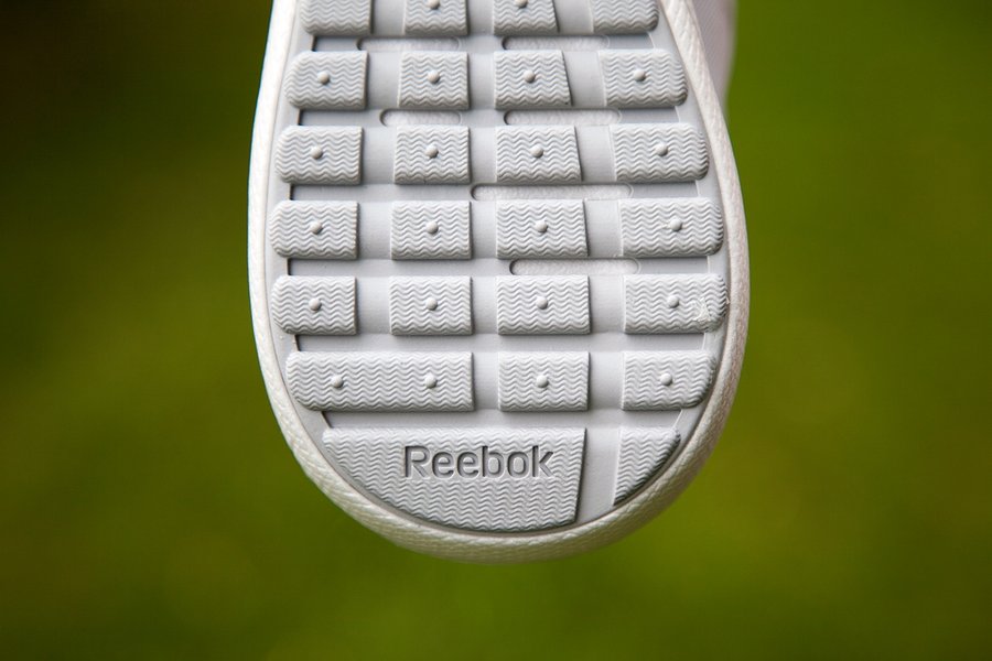后跟蜂窝状纹理与银色 Reebok Logo 相呼应,熟悉的经典造型与现代标识完美融合。