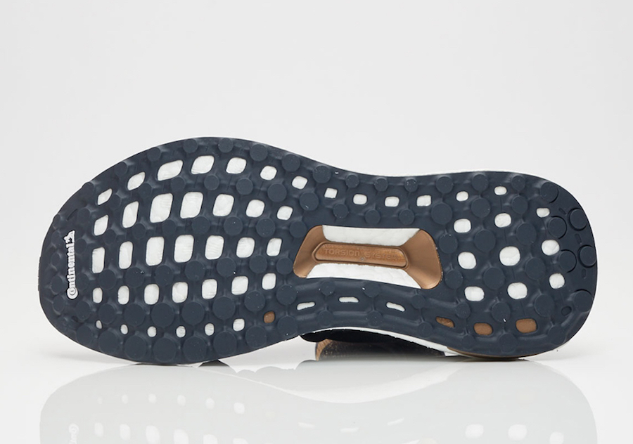 鞋款最大的改变就是在原有基础上将低帮改为中帮设计,鞋帮高度能够轻易包裹脚踝,整体鞋面还是使用经典的 Primeknit 编织技术,通体海军蓝编织中加入金线营造出闪耀金粉的效果,后跟处点缀醒目的 adidas 与 Stella McCartney 的 Logo,搭载白色 Boost 中底及马牌海军蓝橡胶外底,整体风格更加时尚前卫。