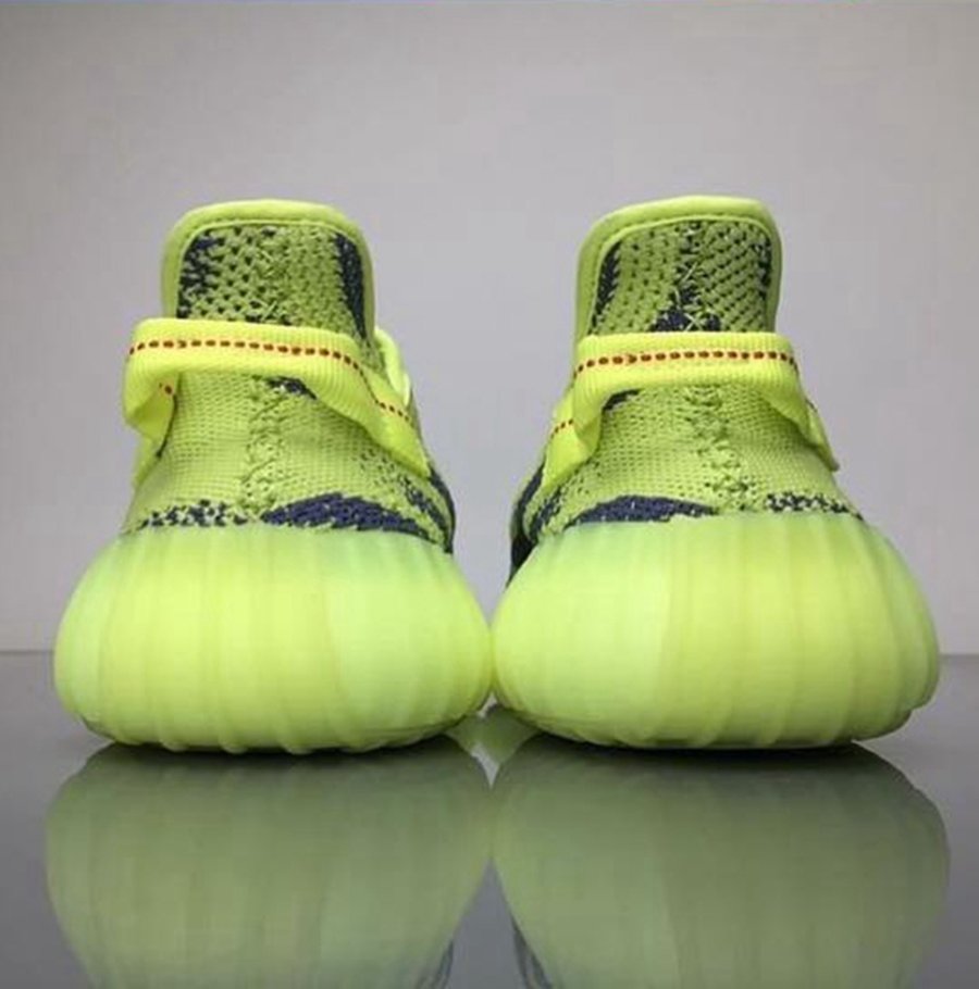 采用黄色装扮为主基调,搭配 Yeezy Boost 350 V2 极具辨识度的斑马纹理呈现,鞋侧的 “SPLY-350” 字样及后跟鞋提缝线则辅以醒目的橘红色调示人。最大的亮点在于大面积的夜光元素注入,鞋底、鞋提、鞋带及内衬均有夜光效果加持,极富视觉冲击力!