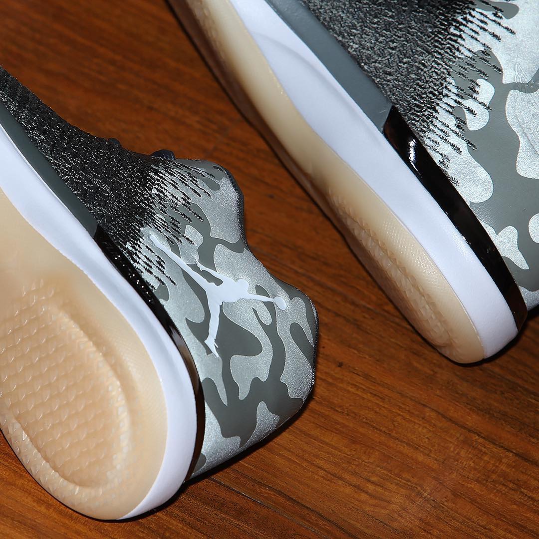 此次 “Camo” 最大的特点在于迷彩纹路都使用 3M 反光材质装扮,赋予了球鞋另类的光泽。此款 Air jordan 31 Low 采用橄榄绿编织鞋身搭配浅色生胶大底,以覆盖 3M 反光迷彩的皮质后跟收尾,整体营造出的军事气息十分浓郁,同时这样的配色更加适合球场实战。