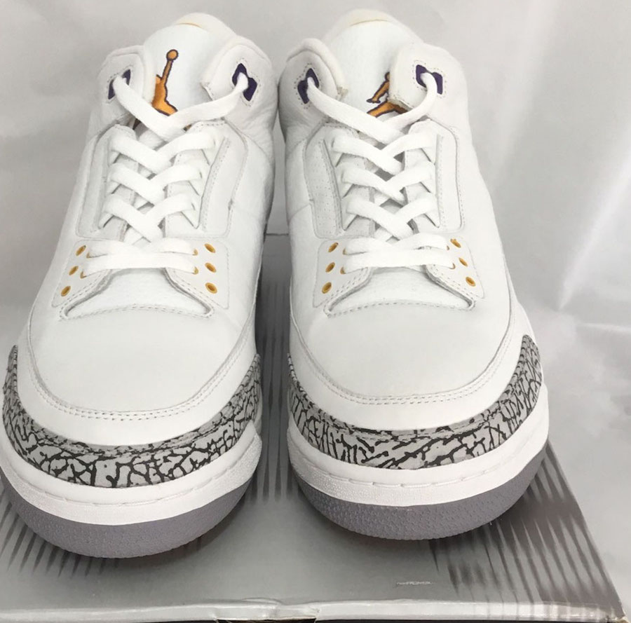 近日该鞋款在海外售卖网站 Ebay 上惊现一双科比专属的 Air Jordan 3 PE ,鞋款为湖人主场配色,尺码为科比的 US14 。 在科比著名的 “乱穿鞋” 时期,Jordan Brand 为他打造了一双专属 Air Jordan 3 PE,鞋款采用湖人队标志性的紫金配色,在鞋舌内的鞋标上有 2002 年 11 月 26 日的生产日期。鞋款拍卖最终以 $30400 美金的天价成交,当然以其存世的数量和非凡的意义,如此价值也理所应当。