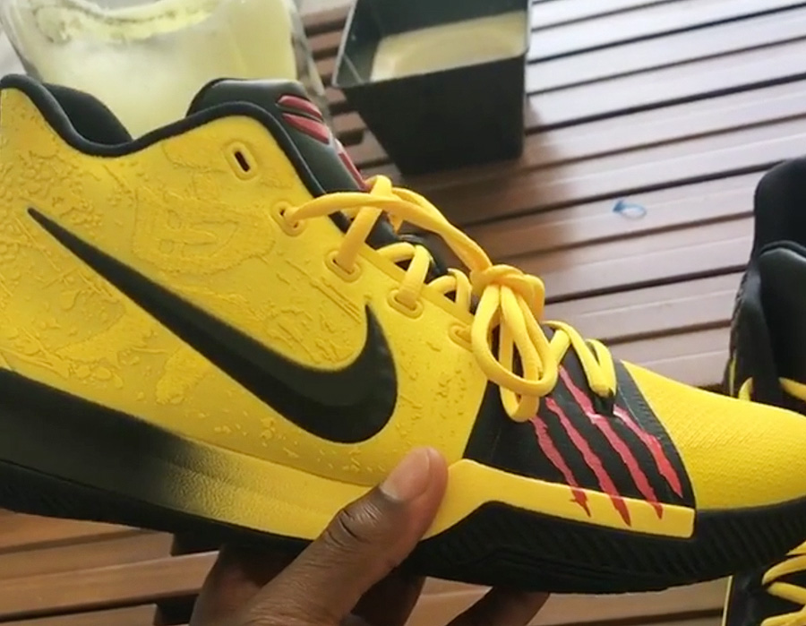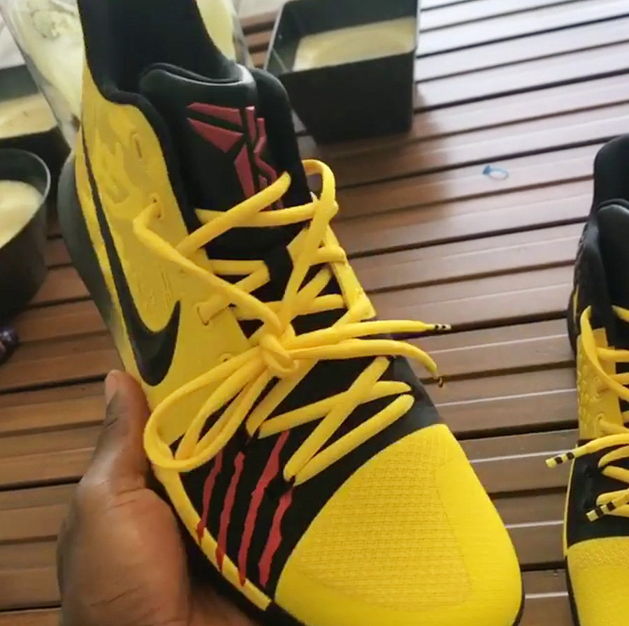 欧文称其为同 Kobe 的合作款,这双 Kyrie 3 “Bruce Lee” 采用了纯正的李小龙配色,无论是黑黄装扮,还是四道血痕,都辨识度极高!