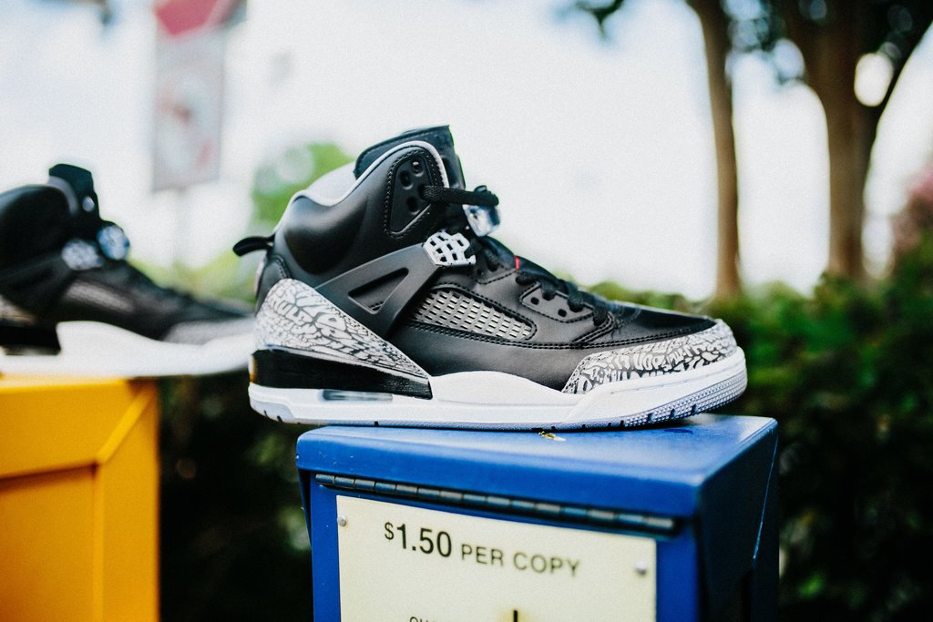 在 White Cement 白水泥配色登场之后,这款黑水泥配色 Jordan Spizike “Black Cement” 也在海外地区上架了,不过国内依然没有发售的信息。 以黑色作为主色调,黑灰爆裂纹则是 Spizike 专属造型,复古运动气质满满! 何时将登陆中国区,我们将持续关注! 货号:315371-034