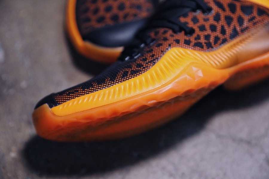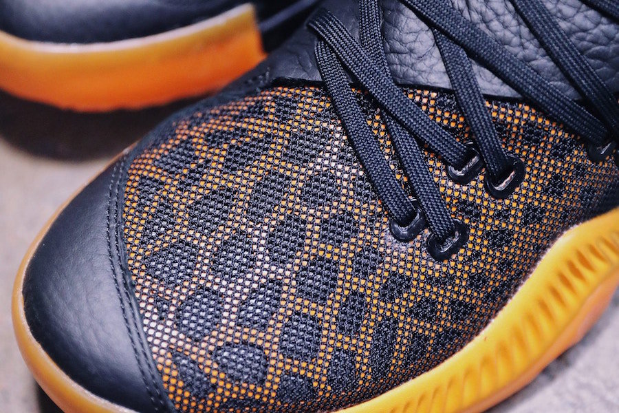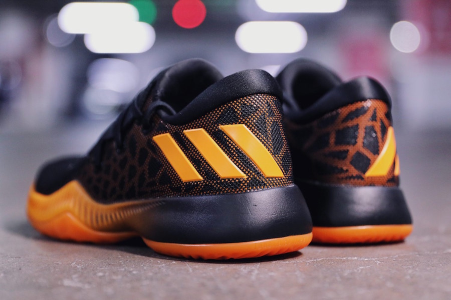 鞋款以黑橙主题呈现,鞋身使用黑色皮革材质搭配大面积透气网眼构成,内层面料则设计为醒目的橙色孔洞,外底纹路与 Harden Vol.1 相同,遗憾的是将 Boost 缓震中底替换为全掌 Bounce,但整体性价比不俗,非常适合实战爱好者。