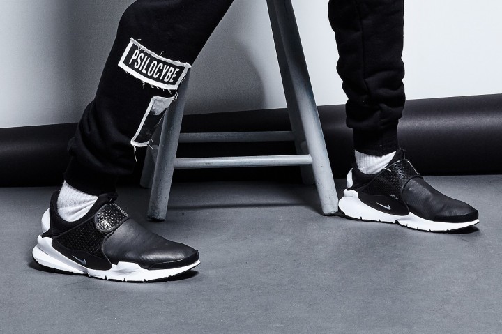 这双 Nike Sock Dart Utility 取消了原本相对柔软轻薄的编织鞋面,将之设计成带有 DWR 防水涂层的人造革,使其增添了几分质感,在保持经典潮流外形的同时又提升了实用性能,可以满足全天候的穿着需要。