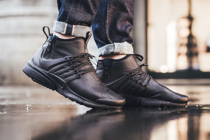 同样是复古鞋款的 Nike Air Presto 也将编织鞋面改为防水涂层人造革,升级成 Nike Air Presto Utility,分为中帮和低帮两个版本。两个版本相比,中帮的防水性能要更加出众,而低帮则更注重脚踝部位的自由。