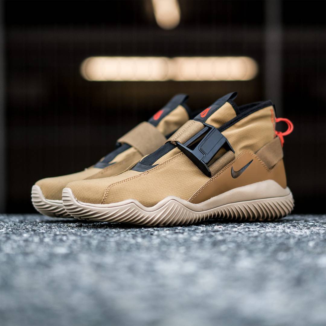 在今年全新推出的 NikeLab ACG 07 KMTR,鞋身面料全部采用防水尼龙材质制作,脚背部位加入的 Fidlock 磁力搭扣与后跟松紧索带使鞋与脚完美贴合,能够最大限度的包裹脚部防止雨水的溅入,绝对能够胜任雨鞋的角色。