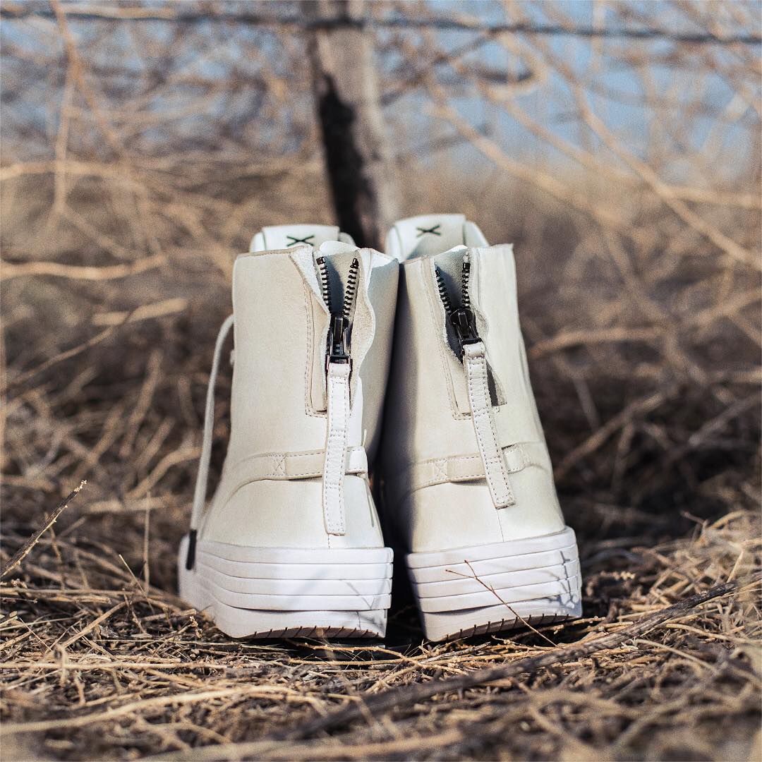 鞋款高帮的设计再加上纯白色的加持,在 “盆栽哥” 身上显得格外醒目,单品的气场一点也不输给穿着的橘色夹克外套。设计中带着浓浓的高街气息,全皮革材质鞋身,后跟带有拉链,搭配奶白色厚底,鞋舌处呈现 XO 字样,简洁的风格中不乏奢华的气质,上脚效果自然非比寻常。