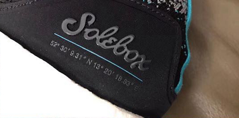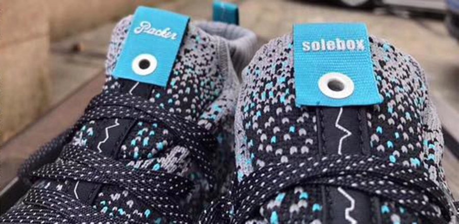 本次依旧延续中帮鞋身造型,鞋领至鞋身采用渐变浅灰至酷黑装扮示人,并注入泼墨元素,搭配薄荷绿色调点缀,并将双方品牌 Logo 印于鞋舌、鞋垫、后跟处彰显不凡身份。最大的亮点在于后跟支架处,除了印有 Logo 之外,还将双方分别位于德国柏林及美国新泽西的店铺位置以经纬度的形式呈现,可谓是细节满满!