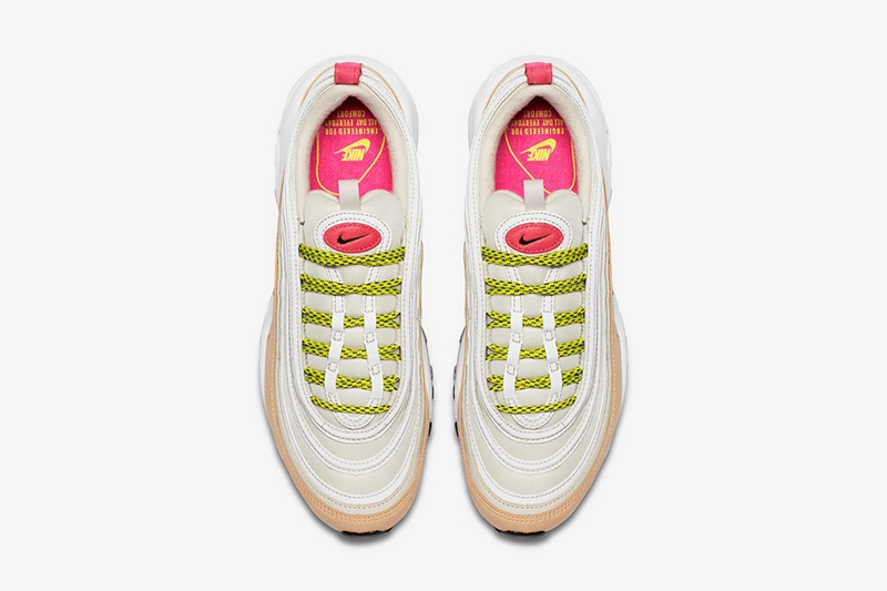 今年作为 Air Max 97 二十周年纪念,不仅将最经典的金、银子弹全部复刻回归,还有众多不同风格的全新配色将悉数登场。 眼前这款全新配色的 Air Max 97,采用清新淡雅的白金配色为主基调,辅以甜美的粉色细节搭配狂野的亮黄色鞋带呈现,标志性的 3M 反光元素依旧得以保留。整体造型充满活力,颜值表现不俗! 目前 Nike 官方暂未释出具体发售详情,感兴趣的朋友不妨多加留意,我们将会持续关注!