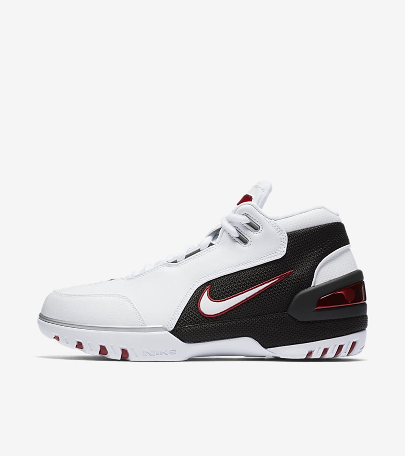 这双 Nike Air Zoom Generation 以白黑装扮呈现,为詹姆斯在 NBA 职业生涯首场比赛中上脚。以悍马车作为灵感来源,在时隔十多年后,依然以粗犷的棱角和极高的辨识度,让我们心驰神往。