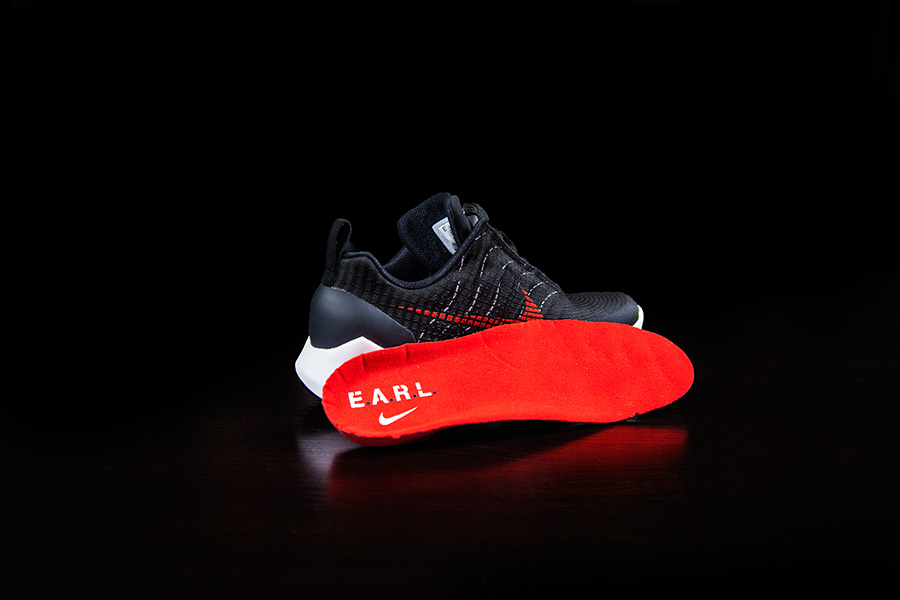 Nike HyperAdapt 1.0 采用抽屉式鞋盒!与国外首发版本不同的是,此次采用黑色进行渲染,正面印有 Nike HyperAdapt 1.0 字样,下方则解释自动系带系统 “E.A.R.L” 的全称!