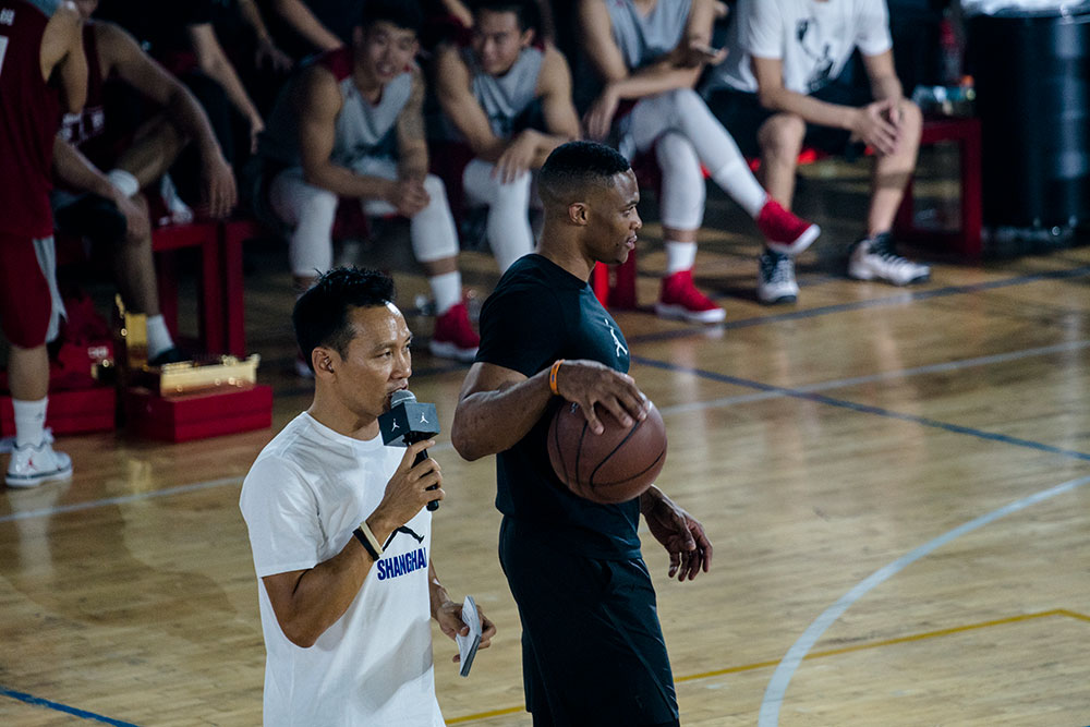 当天,威少先是来到位于上海第一条商业街南京东路的 Jordan 139 NANDONG,为这家中国大陆东部地区首家 Jordan 品牌旗舰店进行开业剪彩!