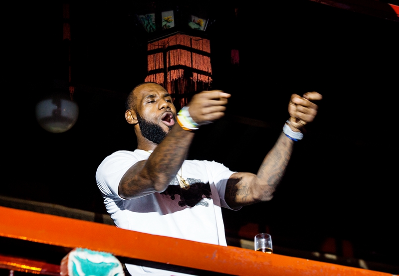 众所周知勒布朗对嘻哈音乐钟爱有加,无论是休赛期的健身房,还是比赛现场,通常画风是这样的