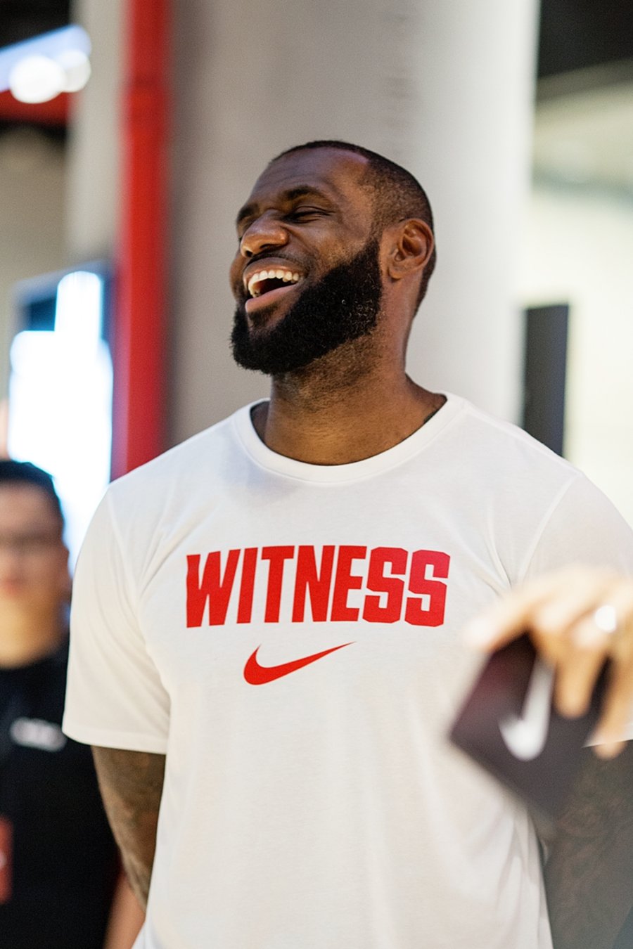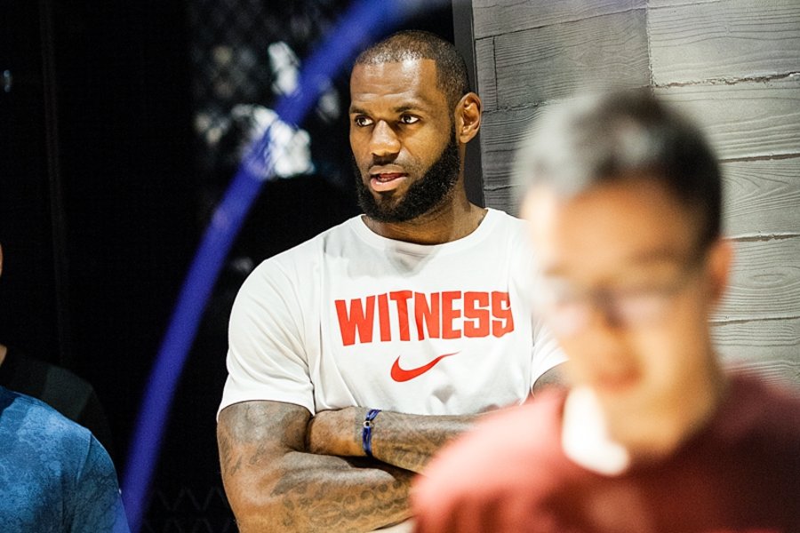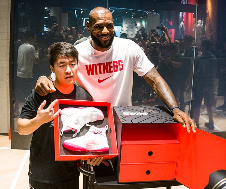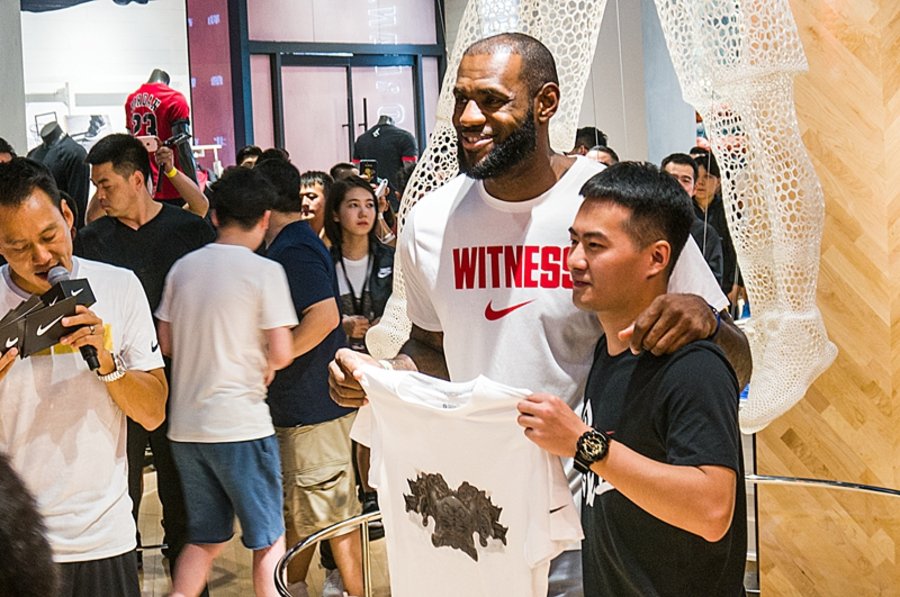 结束采访,一行人跟随勒布朗来到早已人山人海的欧美汇耐克及 Jordan 篮球体验店。聚集在店铺门口的詹密目测已近上万人,MVP 的呼声一浪高过一浪。小编没能记录这壮观场面,因为粉丝确实太多,相机镜头广角根本不够用。