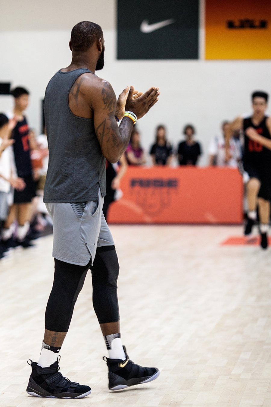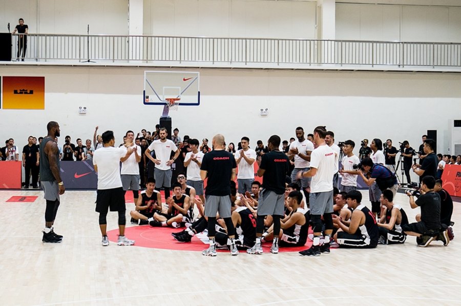 结束在店铺的活动,詹姆斯奔赴 Rise Academy 在进化工厂开展的球员训练营。
