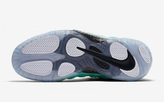 跟经典款式相比,这双 Nike Air Foamposite Pro “Island Green” 采用银色的立体 Jewel Swoosh 呈现,以华丽的金属质感,注入更为醒目的视觉亮点。
