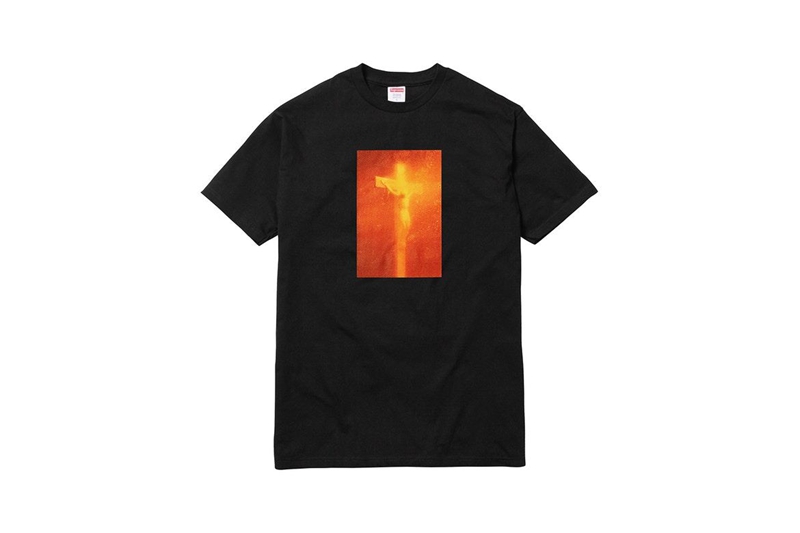 艺术家 Andres Serrano 的作品风格是以尿液、精液、母乳、血液等液体浸泡一些具有宗教意义的物件,并用迷幻效果拍摄呈现。本次 Supreme 与其联名并将作品图案印在服饰及鞋款之上,口味实在是太重!